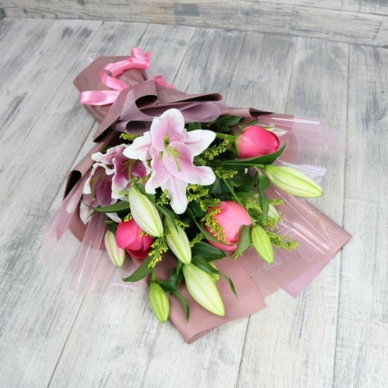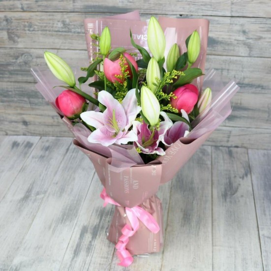 Порадовали племянницу свежестью цветов и красотой нежного дизайна оформления букета из гербер.