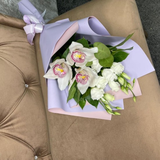 Букет из орхидей и эустомы