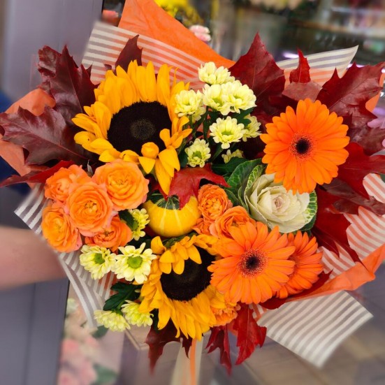 Букет с подсолнухами и хризантемами
