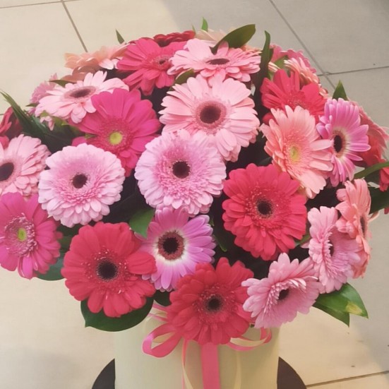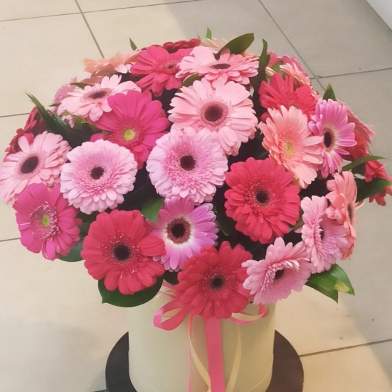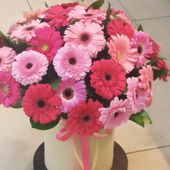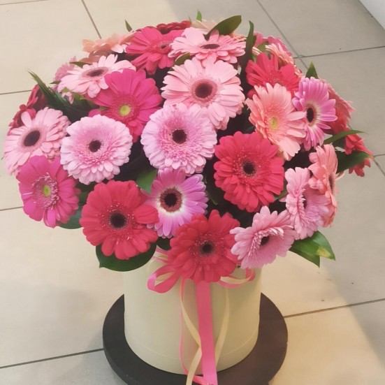 Гербера в шляпной коробке