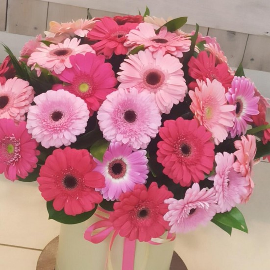 Гербера в шляпной коробке в Хабаровске