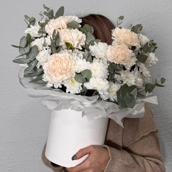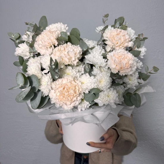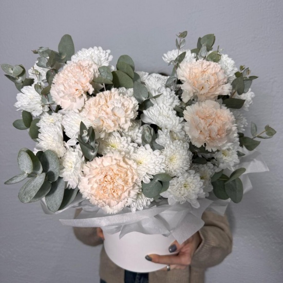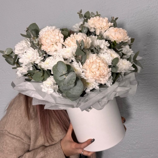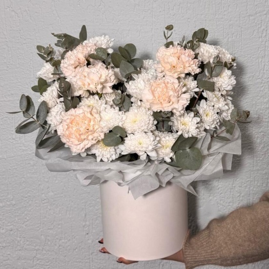 Коробка из кустовых хризантем и диантуса в Хабаровске